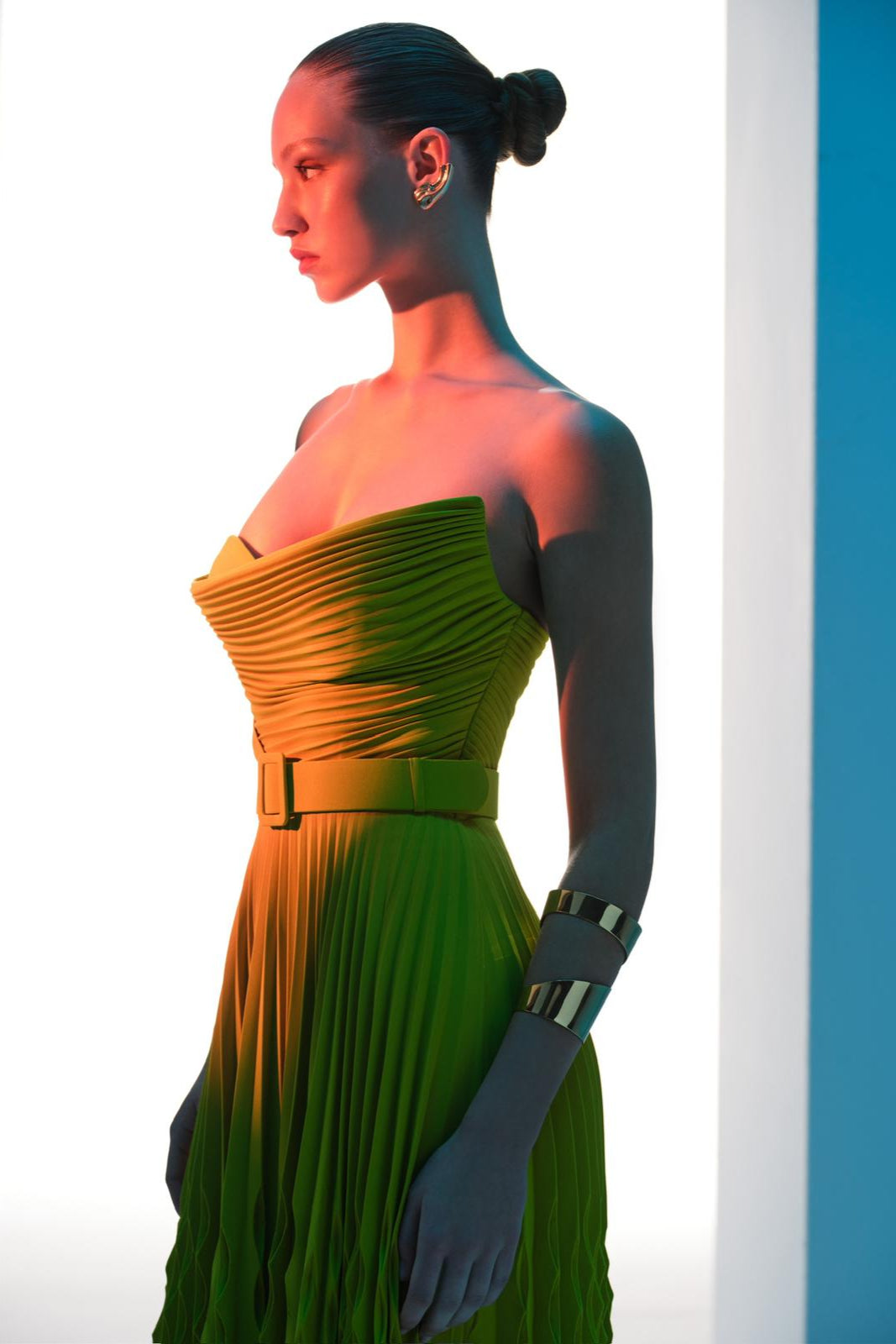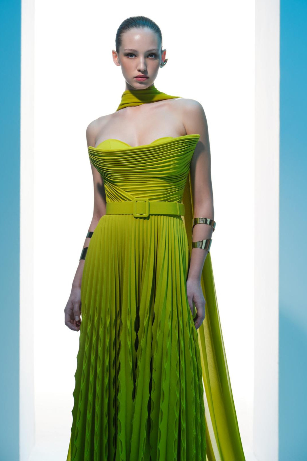 Embellished with drapes all over the bust