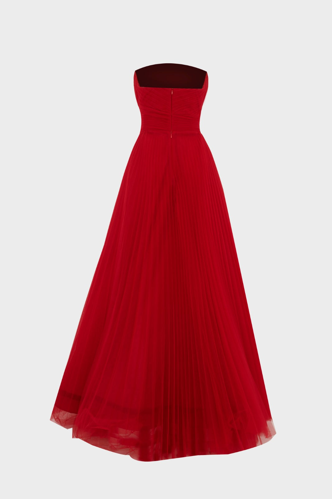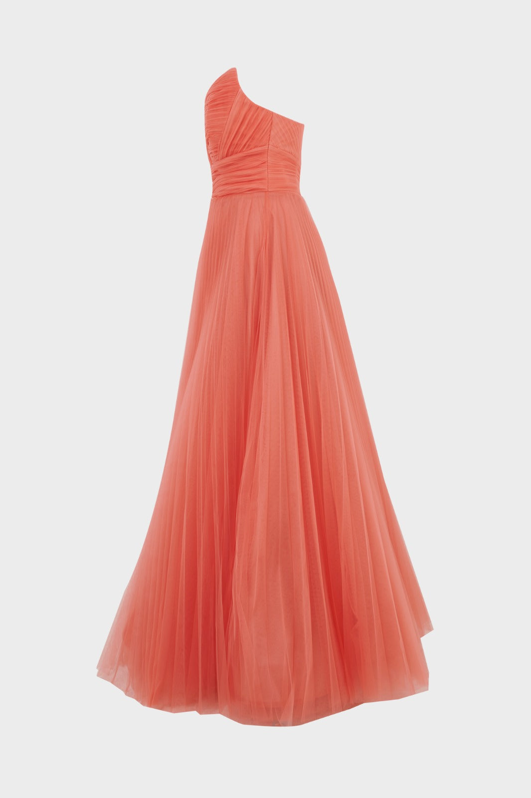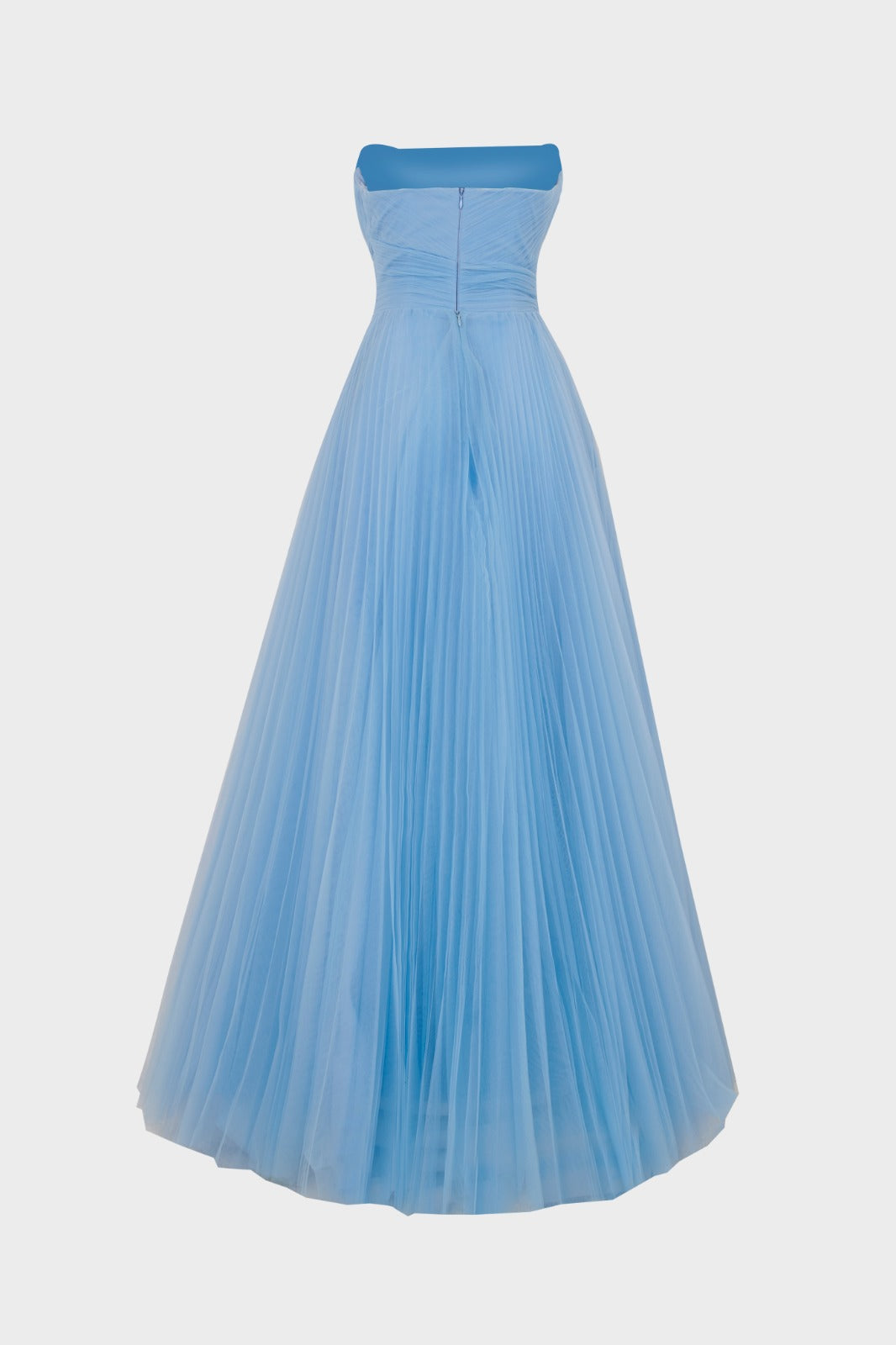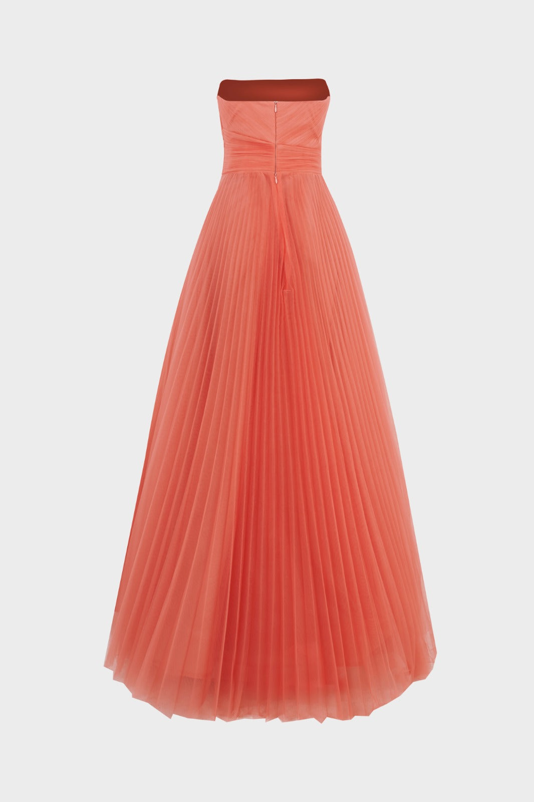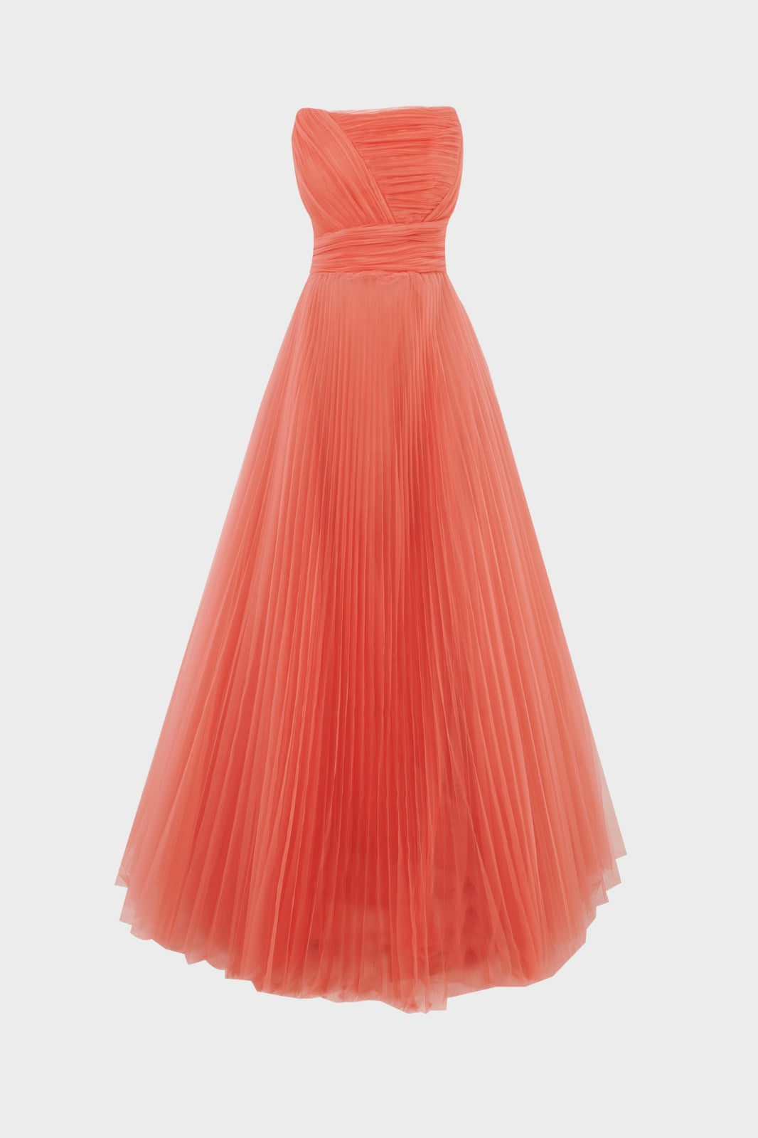 • Thinly-Pleated and hand-made 3D dimensional Draped bust, high-ending line, and a wide pleated skirt of a French Tul-based fabric layered