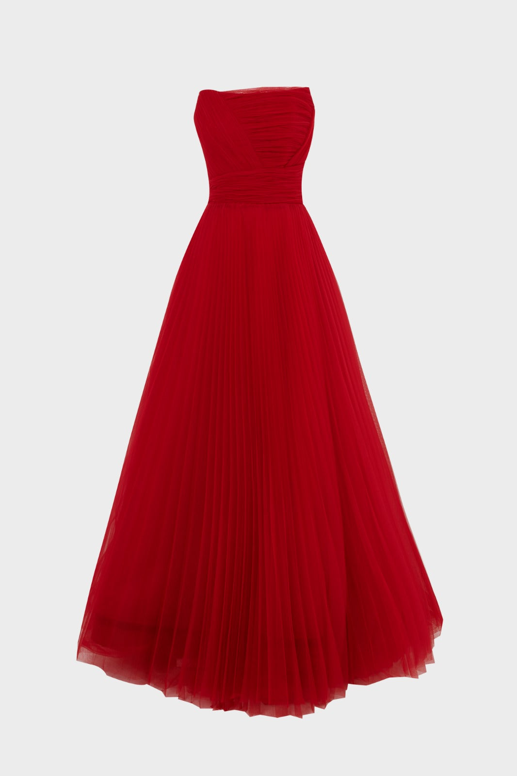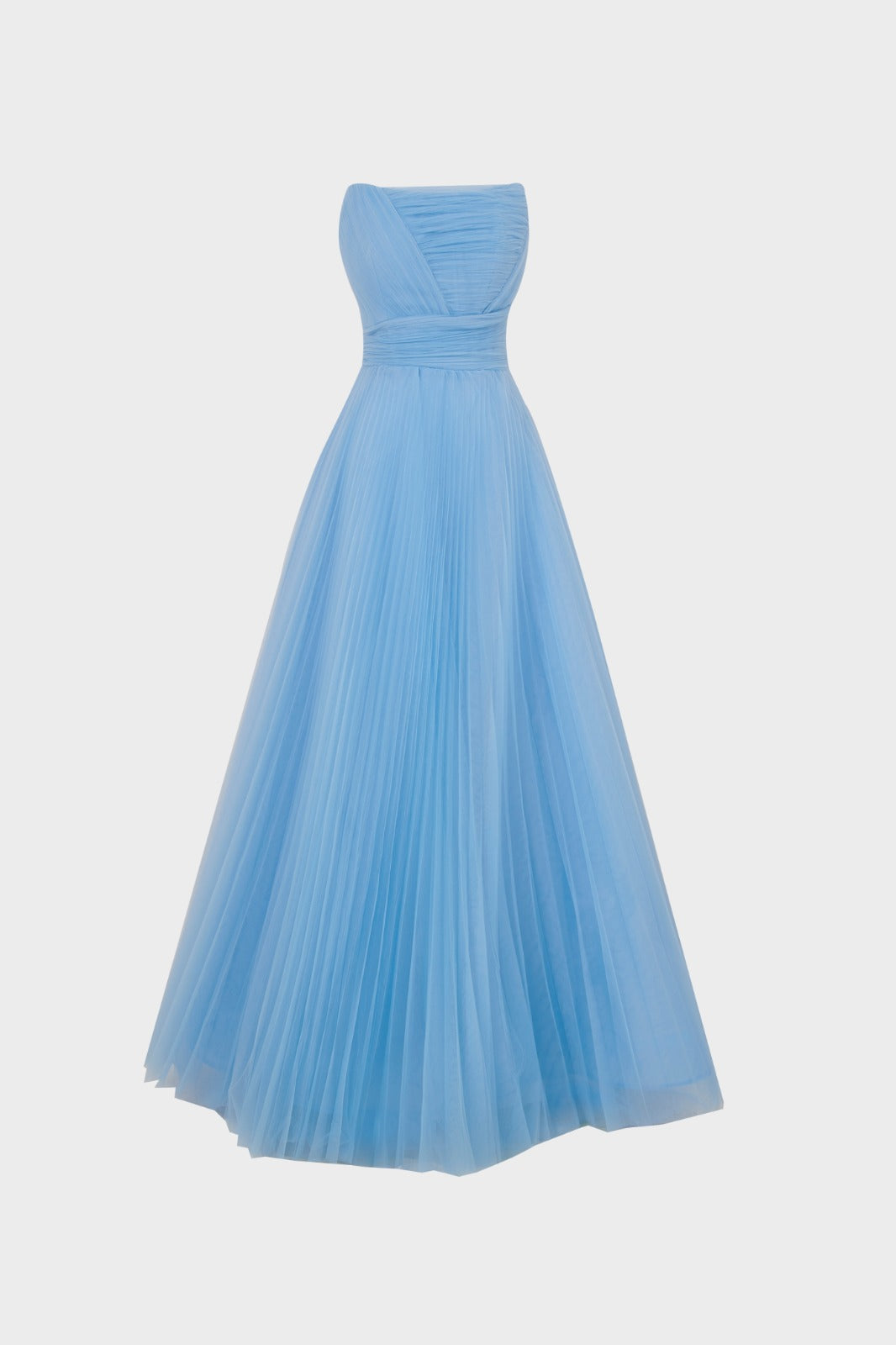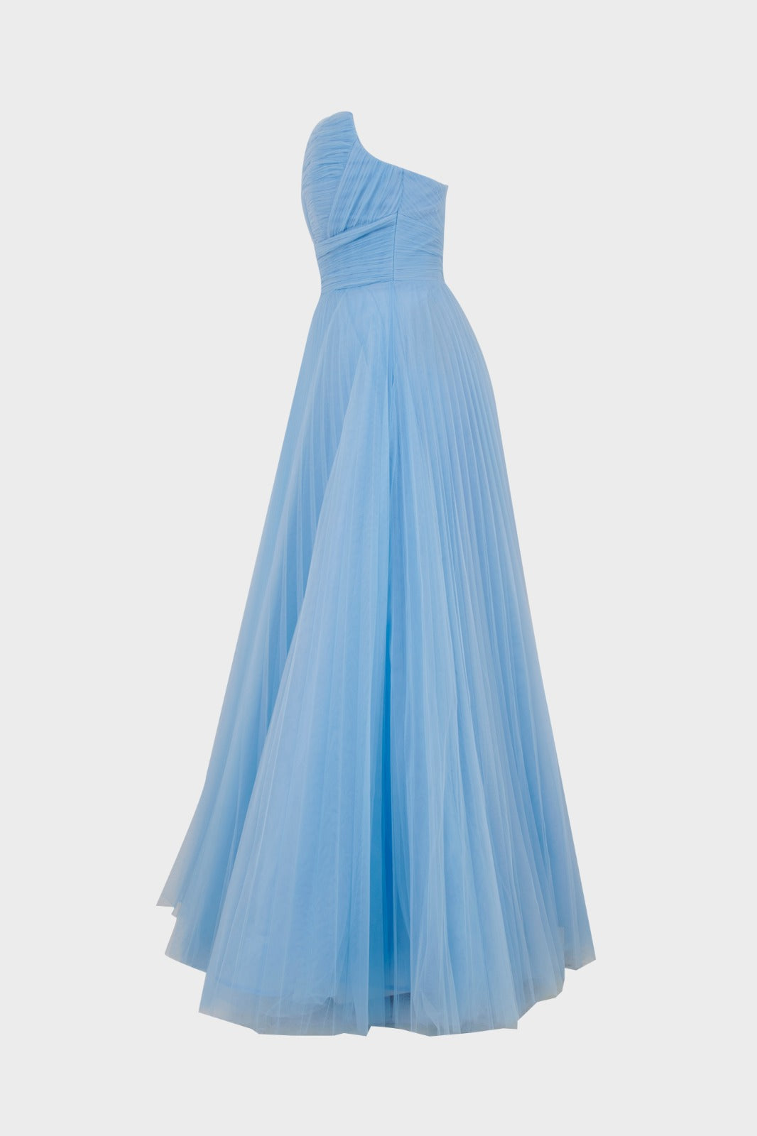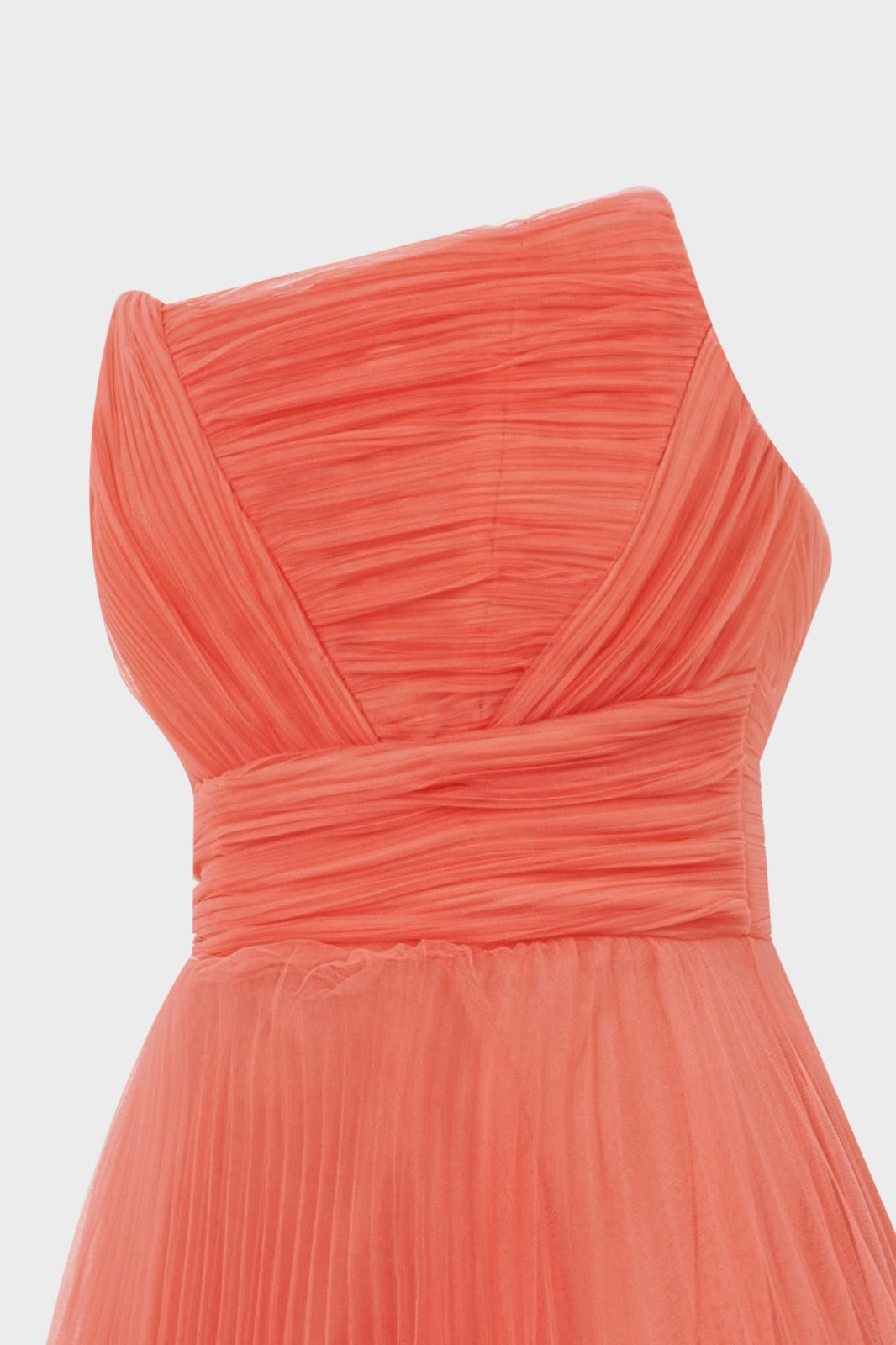 • Thinly-Pleated and hand-made 3D dimensional Draped bust, high-ending line, and a wide pleated skirt of a French Tul-based fabric layered