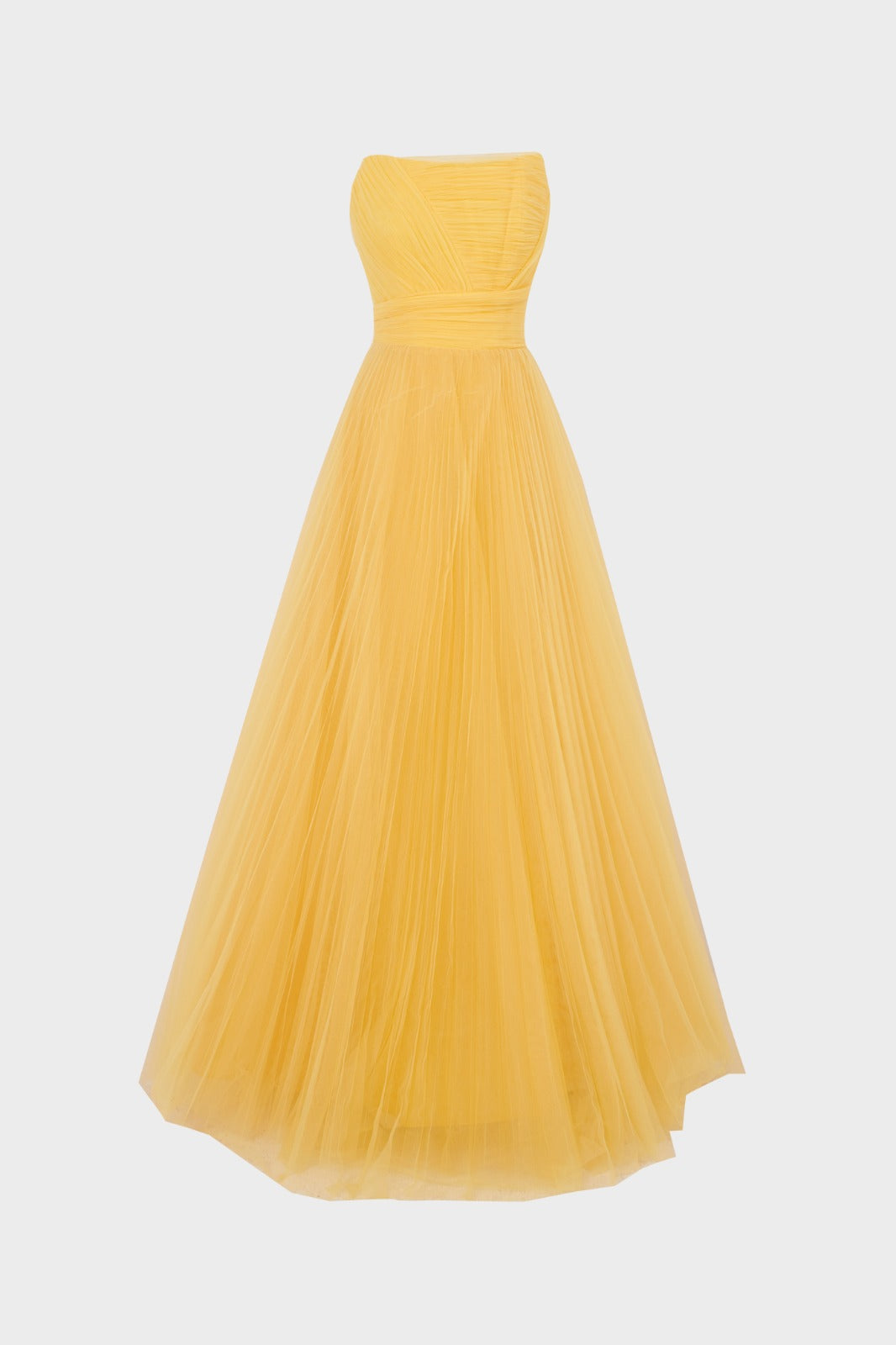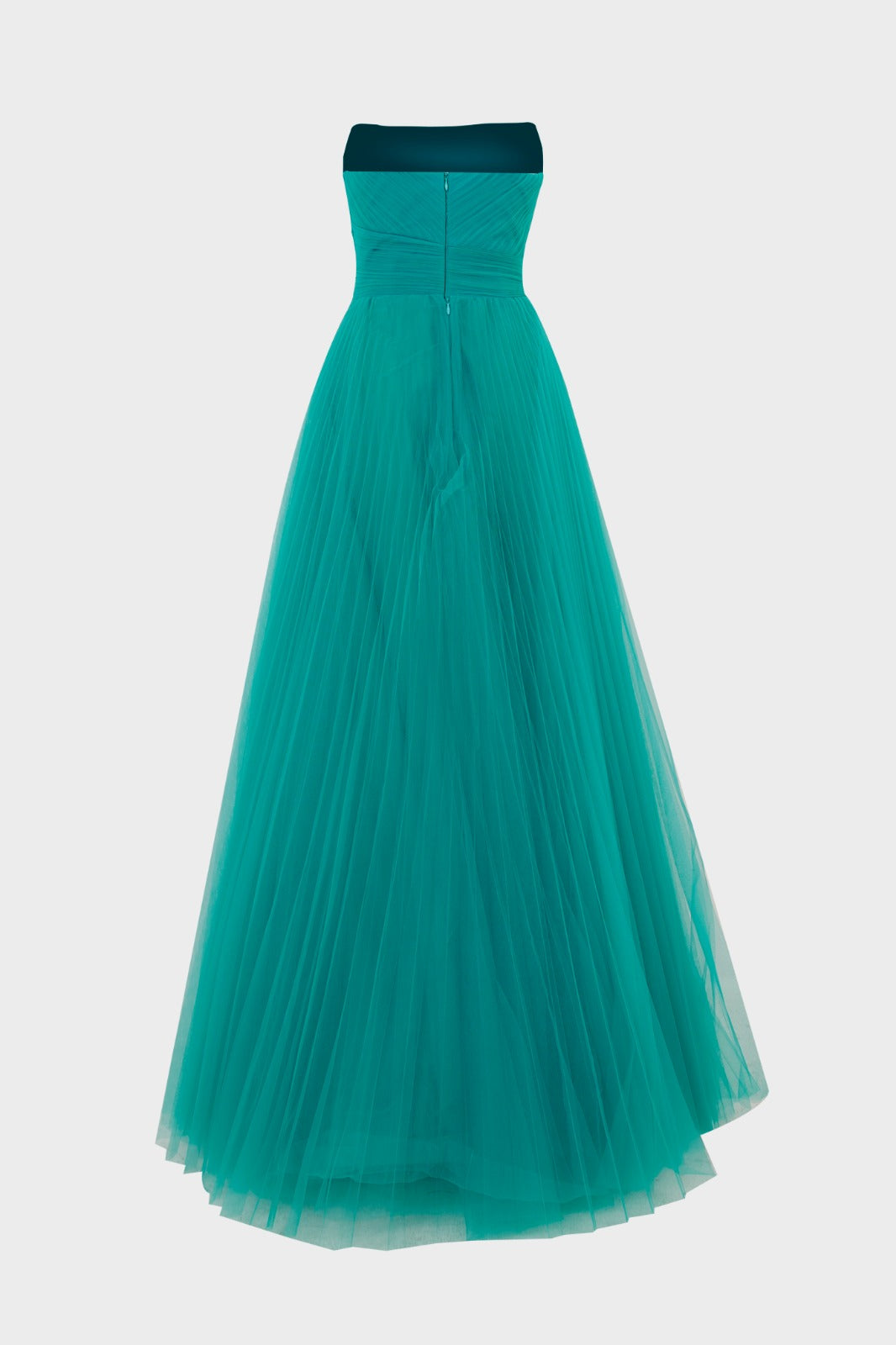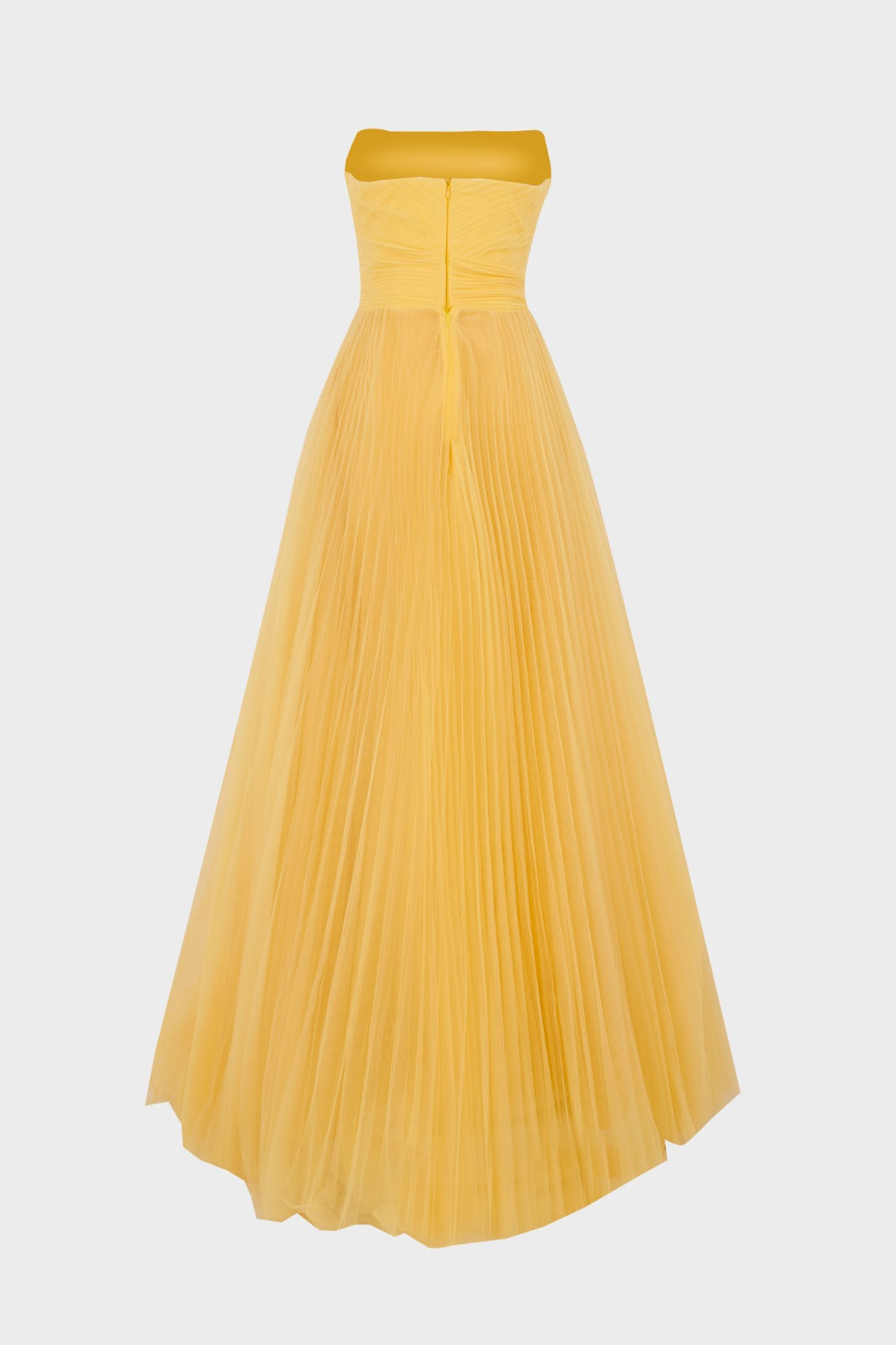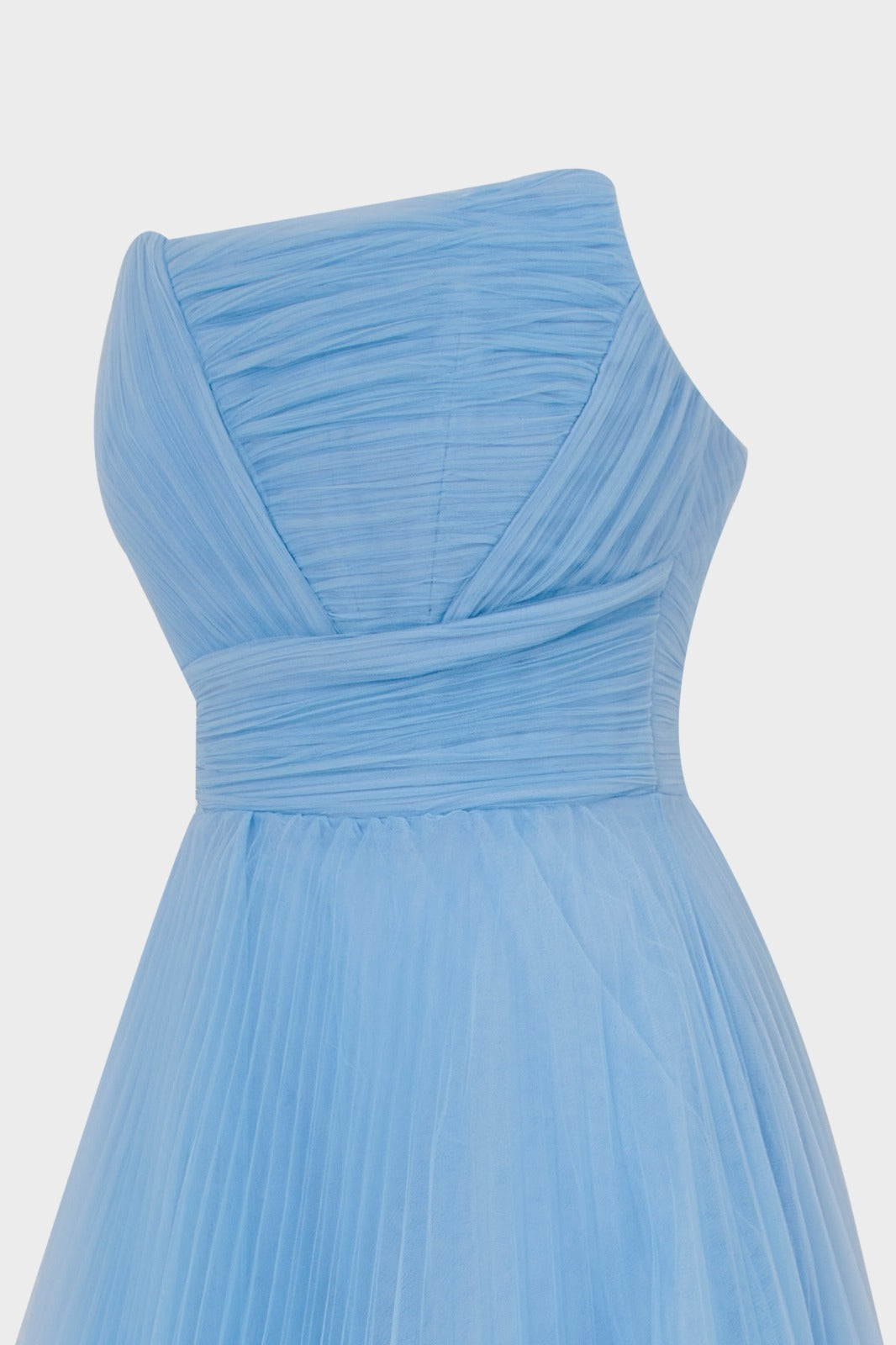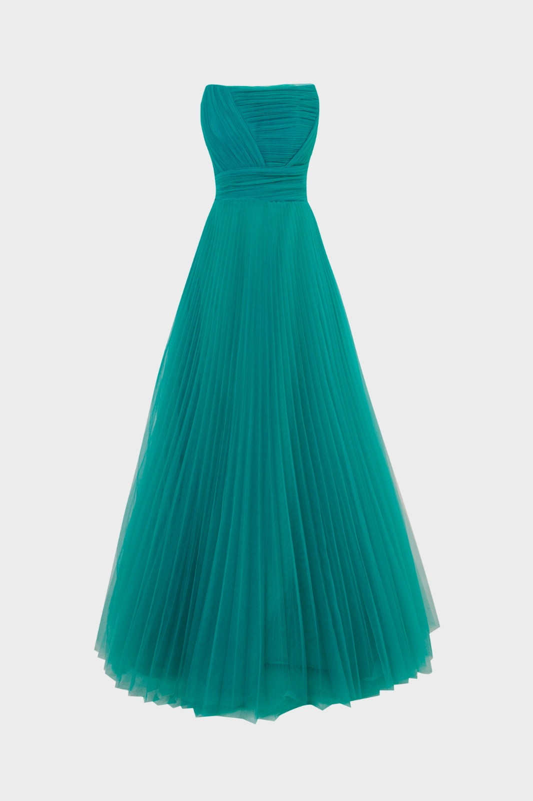 • Thinly-Pleated and hand-made 3D dimensional Draped bust, high-ending line, and a wide pleated skirt of a French Tul-based fabric layered