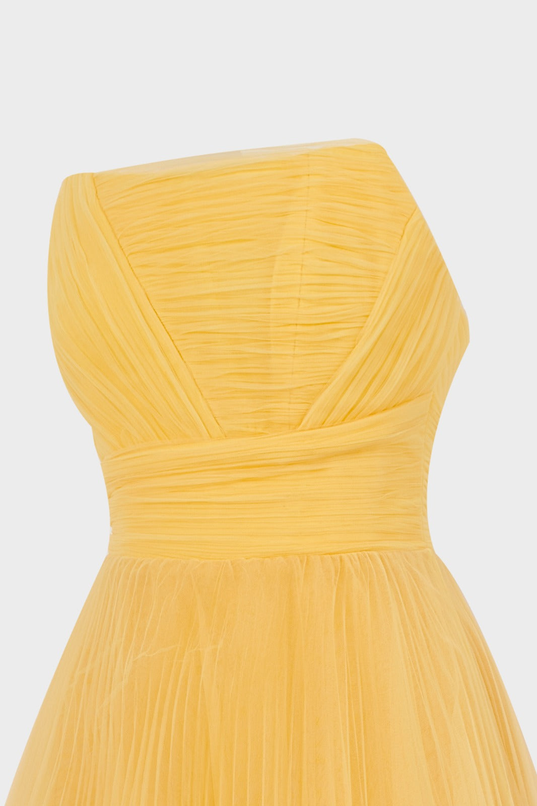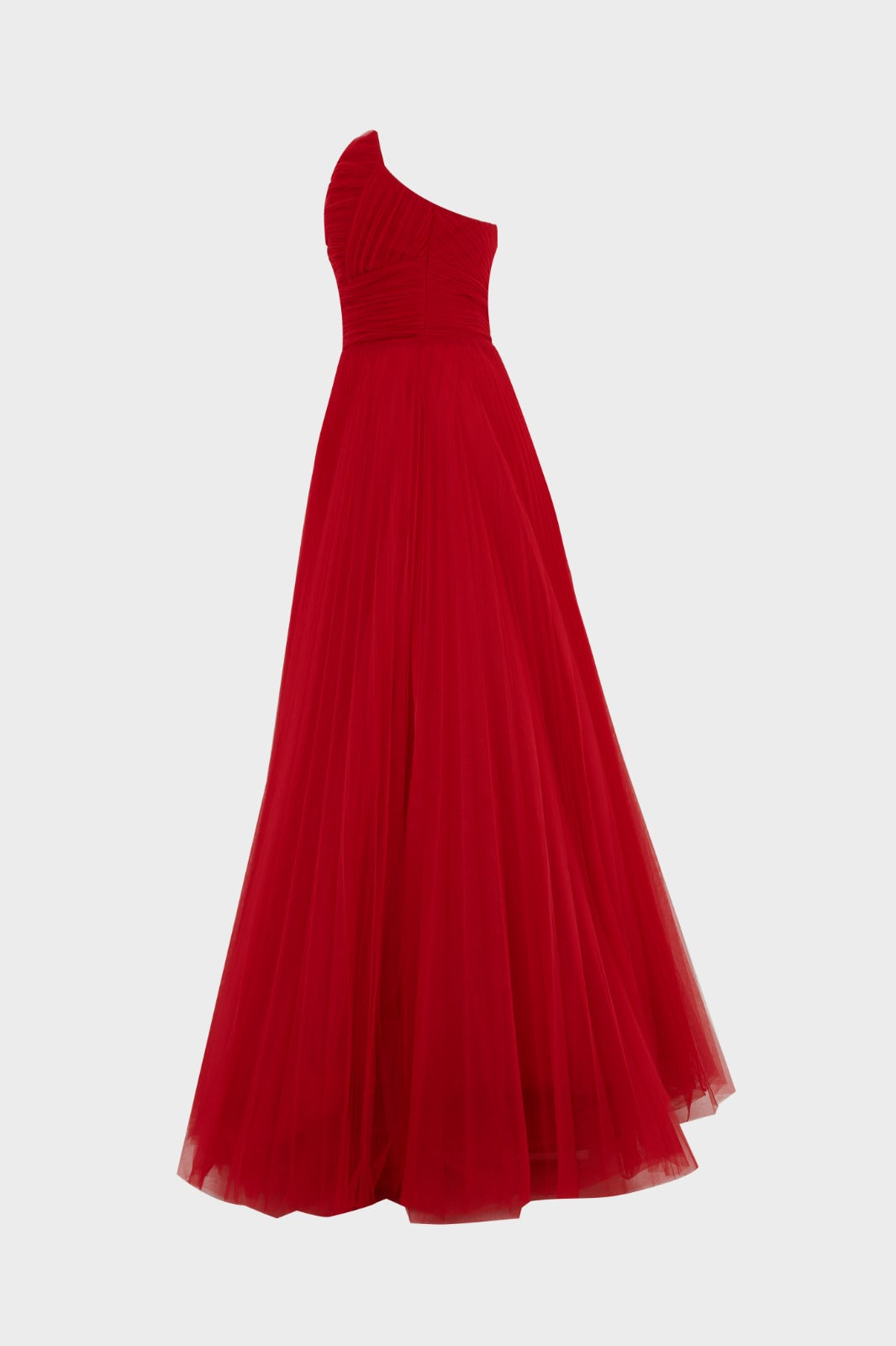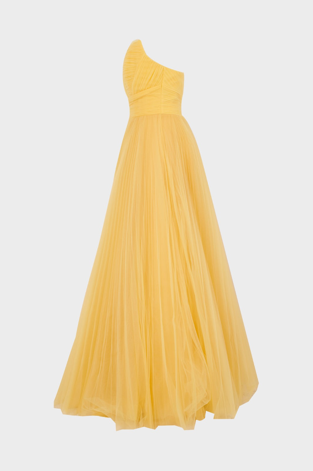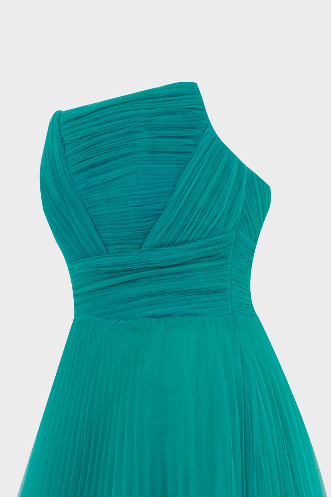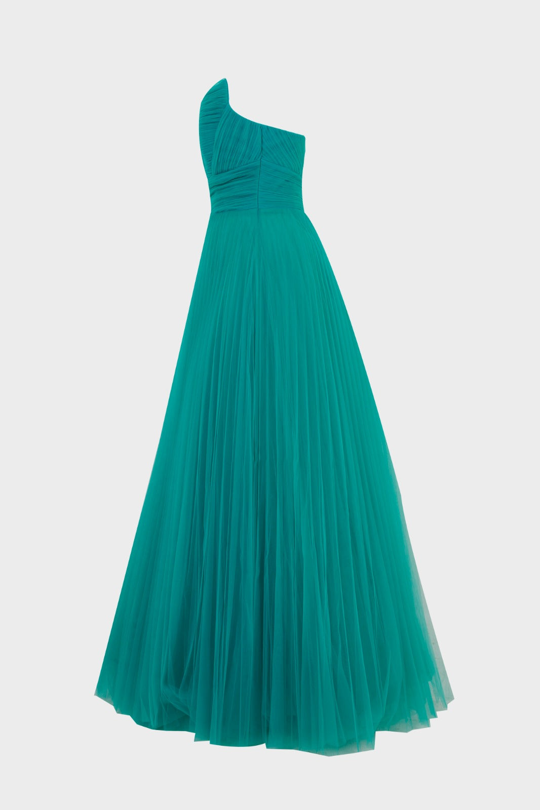 • Thinly-Pleated and hand-made 3D dimensional Draped bust, high-ending line, and a wide pleated skirt of a French Tul-based fabric layered